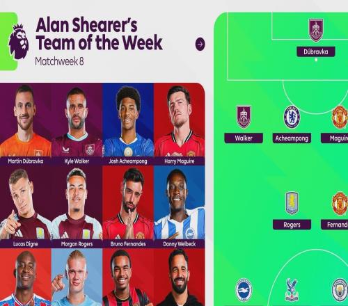 阿兰希勒评英超第8轮最佳阵:哈兰德领衔,马奎尔入选